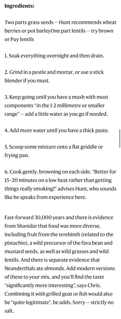 Based on an analysis by archaeobotanist Ceren Kabukcu, Hunt and their colleagues at Shanidar Cave in the north-west Zagros Mountains. “Following this recipe, you get something quite earthy tasting from the lentils and quite toasty, too, from the ‘grass’ seeds” says Hunt.
