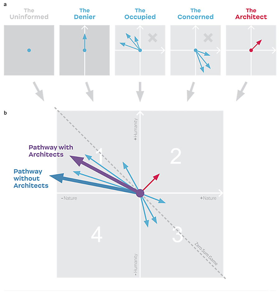 5. ‘The Architect’ is the alternative to conflict. It is the only archetype that can catalyse transformative change. Architects have the means to make a positive impact and will act and empower others to act to reduce global negative environmental trends.