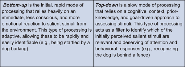 Salient stimuli will meet an attention threshold at the first BU node: association (Figure 2A). Associative processes, both learned and innate, allow for valence assignment of the stimulus as positive (appetitive or rewarding), negative (threatening or aversive), or neutral.
