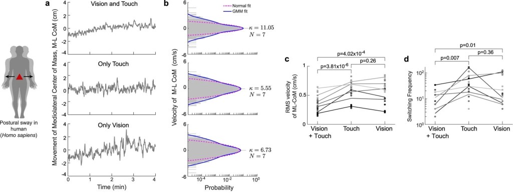 a, Postural sway in humans (Homo sapiens) during maintenance of quiet upright stance