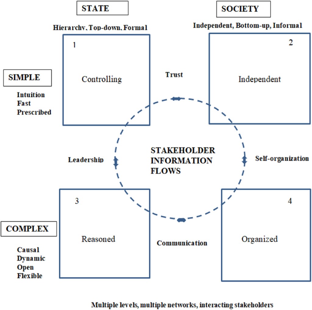 Top-down controls and governance meet with bottom-up self-organized small group structures, interacting multi-level webs of stakeholders emerge with often widely differing needs and wants, resources and cultures, power and networks.