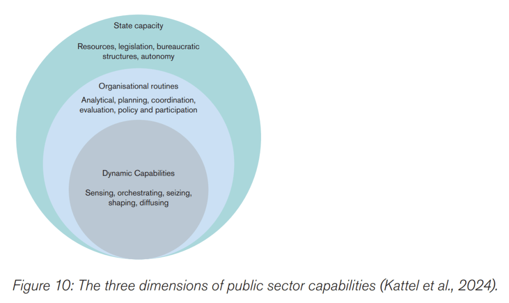 Dynamic capabilities identify the set of specific abilities that enable the renewal of governments — more specifically, through the structuring and restructuring of their organisational routines and broader state capacity: