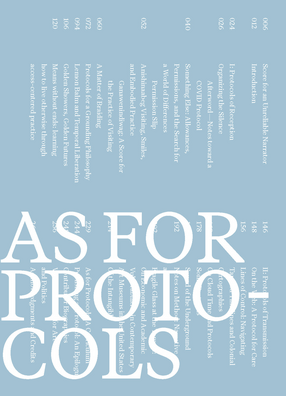 The first publication to critically examine protocols across a wide range of disciplines, As for Protocols brings together contributions by twenty-four international artists, writers, scholars, musicians, architects, and scientists who explore protocols across various fields, foregrounding opportunities for creating new protocols that are inclusive and equitable.