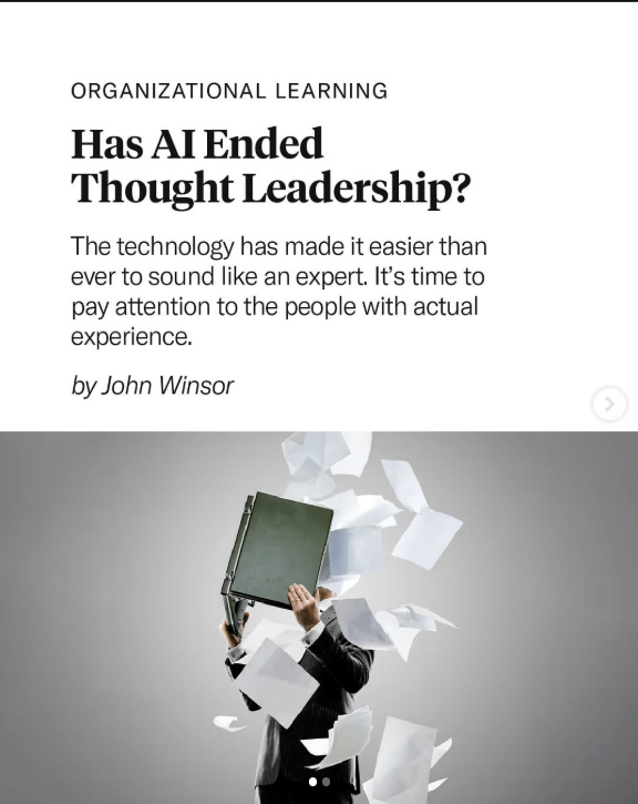 To my fellow thought leaders—the writers, the speakers, the advisors, myself very much included—I’ll say this: The era where a well-crafted argument was sufficient to justify our value is ending.